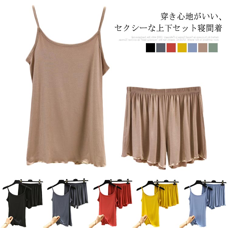 送料無料パジャマ レディース 2点セット キャミソールセット 寝巻き 部屋着 ナイトウェア ルームウェア 寝間着 セットアップ 上下セット ショートパンツ ノースリーブ ウエストゴム セクシー 大人 爽やか キレイめ 上品 セクシー 夏物 夏新作