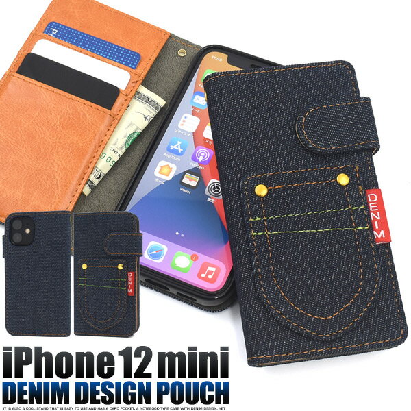 メール便送料無料【 iPhone 12 mini (2020 5.4インチ) ポケットデニムデザイン手帳型ケース 】 iPhone12mini ケース カバー 2020年発売モデル シンプル スマホカバー スマホケース 手帳型 二つ折り 横開き カジュアル かわいい おしゃれ ジーンズ