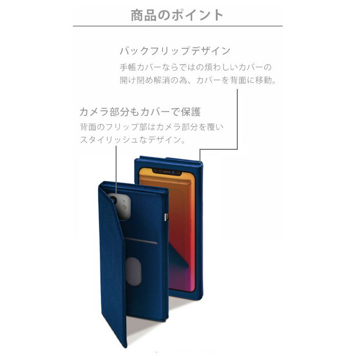 ≪iPhone12 / iPhone12Pro≫ バックフリップケース手帳型ならではの煩わしいカバーの開け閉めを解消する為、フリップを背面に移動したiPhone 12 /12 Pro用バックフリップケースです。